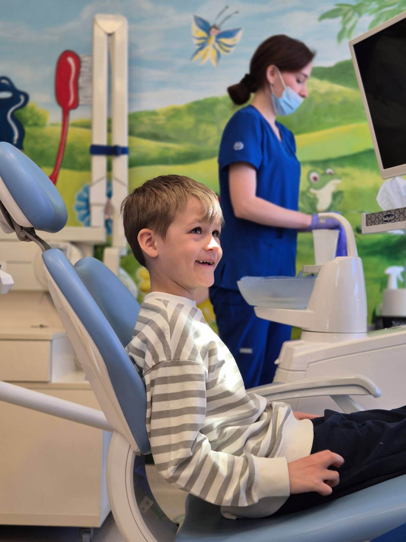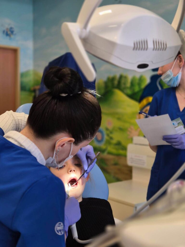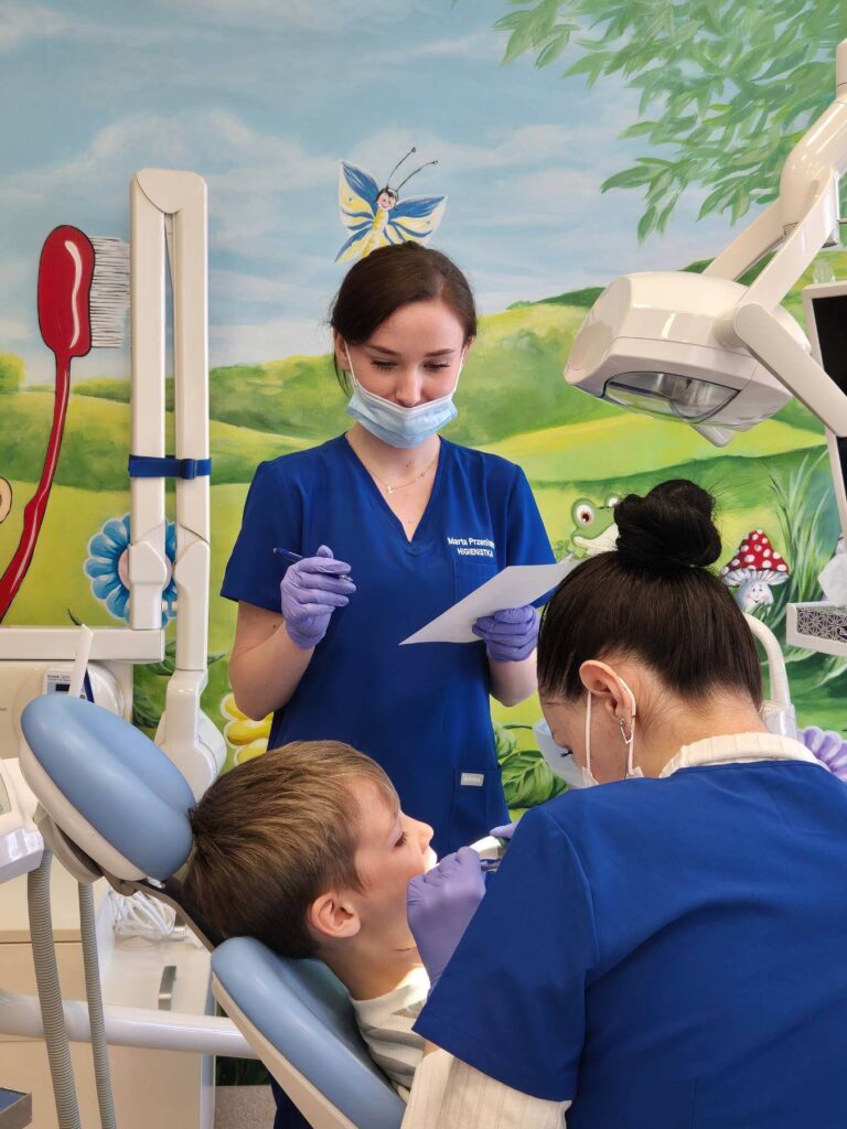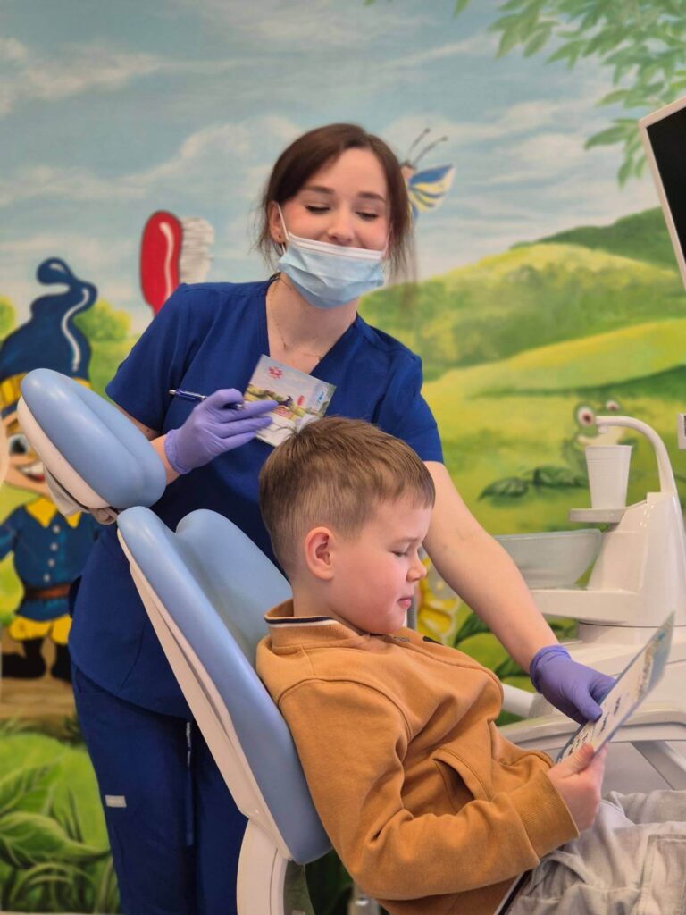 Jest to taka pierwsza wizyta adaptacyjna dla Maluchów. Po spotkaniu w gabinecie, rodzice dostają wyniki przeglądu stomatologicznego swojego dziecka. Jeśli rodzice wyrażają zgodę, możemy podczas tej wizyty wykonać fluoryzację zębów.