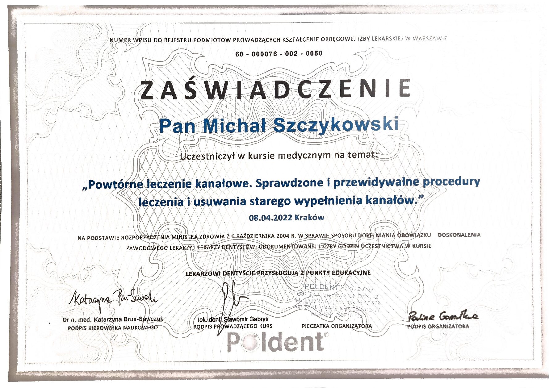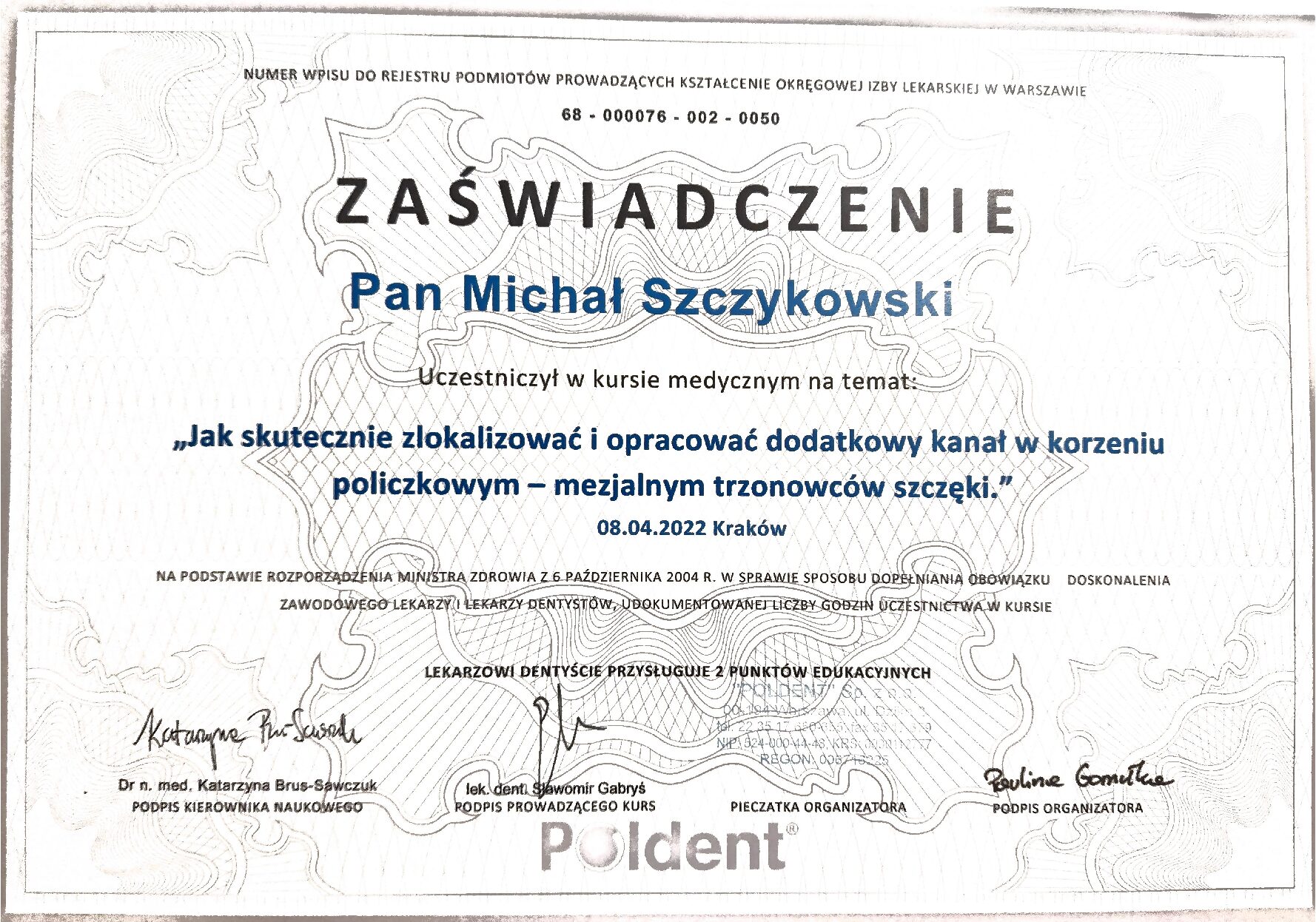 Absolwent kierunku lekarsko-stomatologicznego Collegium Medicum Uniwersytetu Jagiellońskiego w Krakowie. W Studio Stomatologii Skrzat zajmuje się leczeniem endodontycznym oraz zachowawczym pacjentów dorosłych. Cechuje go staranność, empatia i zrozumienie potrzeb leczniczych pacjentów, a każdemu z nich poświęca odpowiednią ilość czasu. Zabiegi wykonuje z wykorzystaniem powiększenia – mikroskopu zabiegowego. Stale podnosi swoje kwalifikacje, regularnie uczestnicząc w kursach i konferencjach