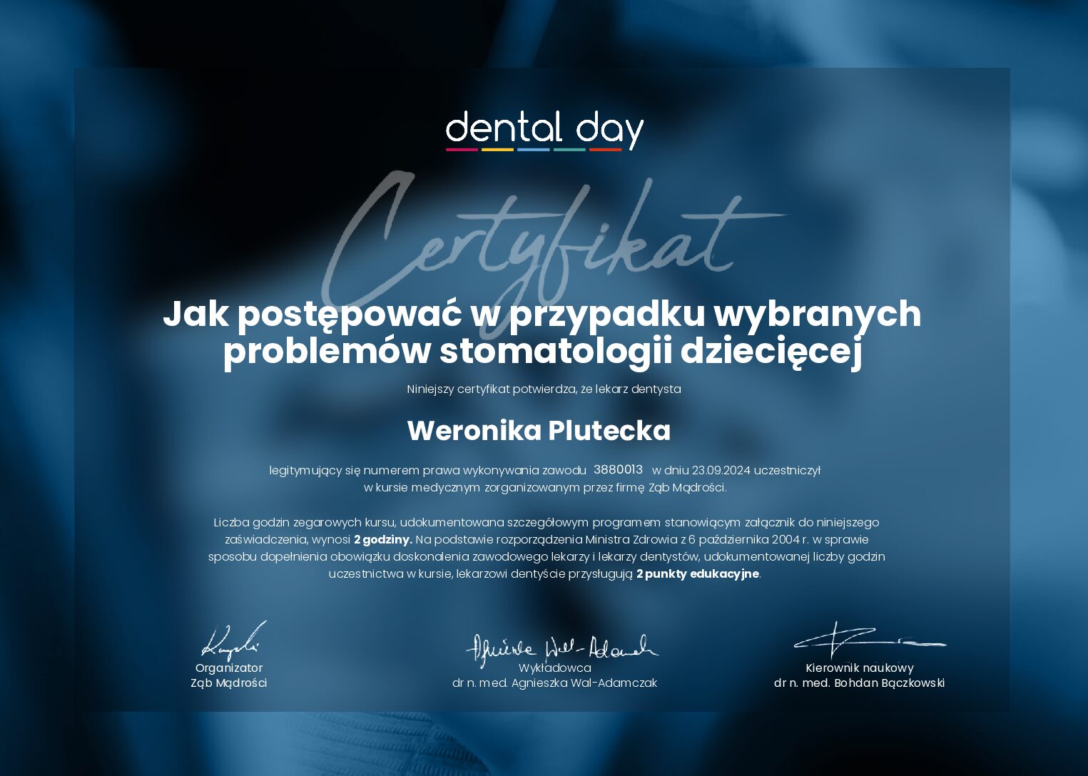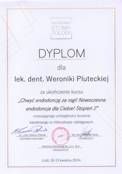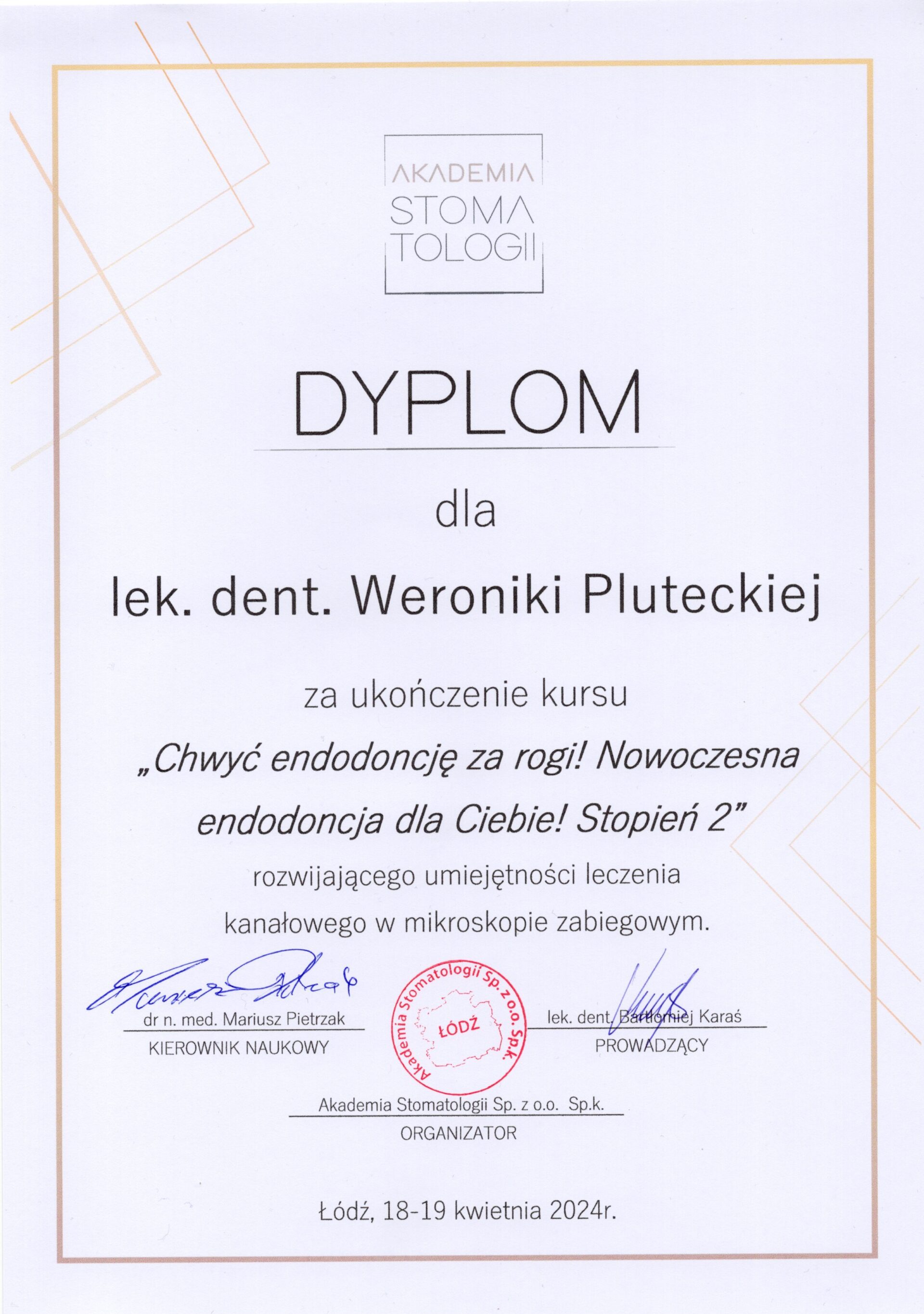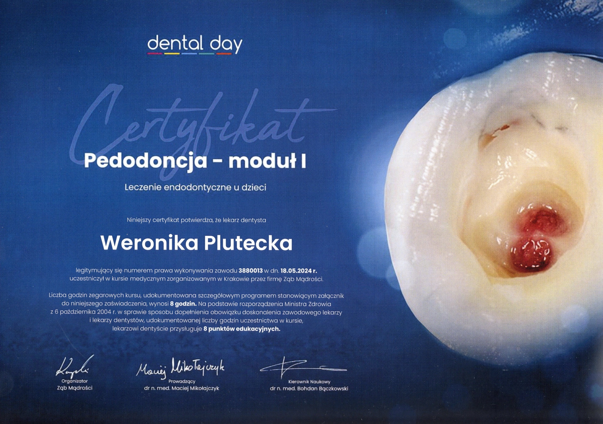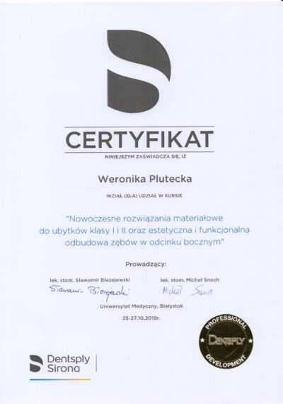 Jest absolwentką Uniwersytetu Medycznego w Białymstoku. Zajmuje się stomatologią dziecięcą oraz stomatologią zachowawczą. Od początku swojej pracy zawodowej szczególną radość czerpie z leczenia najmłodszych pacjentów. Dokłada wszelkich starań, aby proces leczenia przebiegał w atmosferze bezpieczeństwa i komfortu. W swojej praktyce postrzega pacjenta holistycznie – kierując się empatią oraz aktualną wiedzą medyczną, zawsze dąży do doboru najlepszej metody leczenia.