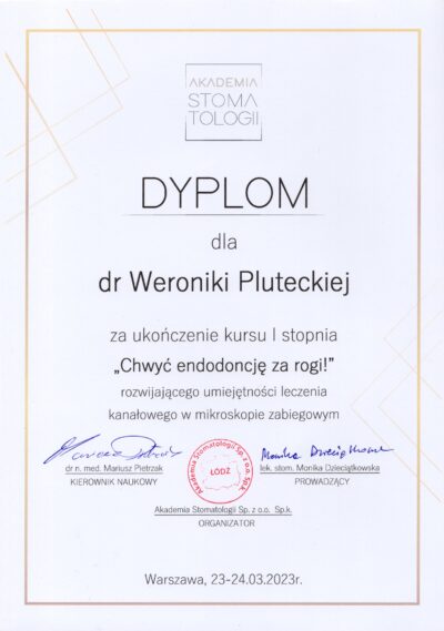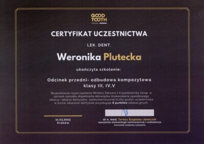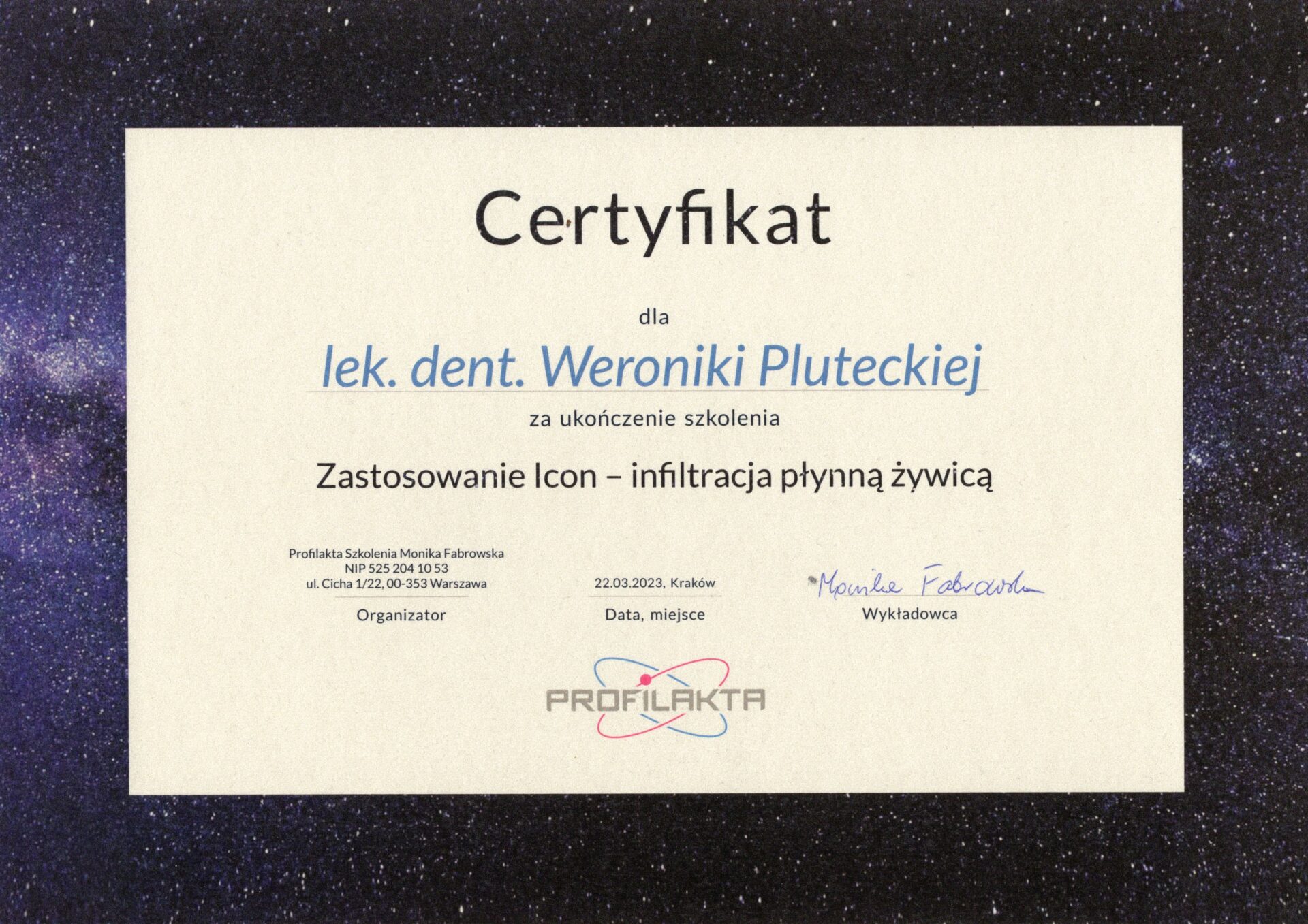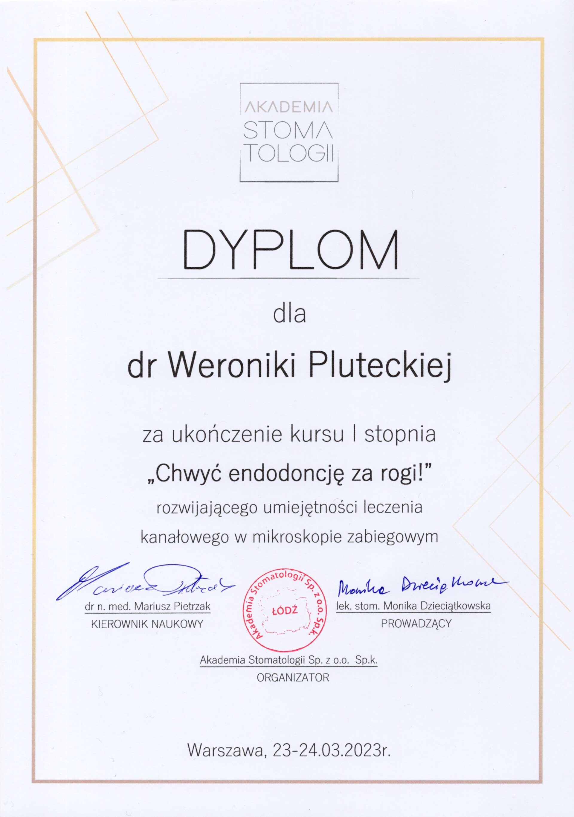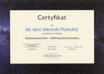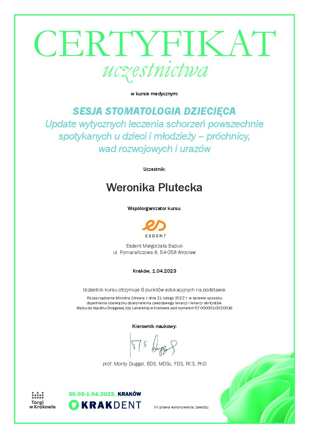Jest absolwentką Uniwersytetu Medycznego w Białymstoku. Zajmuje się stomatologią dziecięcą oraz stomatologią zachowawczą. Od początku swojej pracy zawodowej szczególną radość czerpie z leczenia najmłodszych pacjentów. Dokłada wszelkich starań, aby proces leczenia przebiegał w atmosferze bezpieczeństwa i komfortu. W swojej praktyce postrzega pacjenta holistycznie – kierując się empatią oraz aktualną wiedzą medyczną, zawsze dąży do doboru najlepszej metody leczenia.